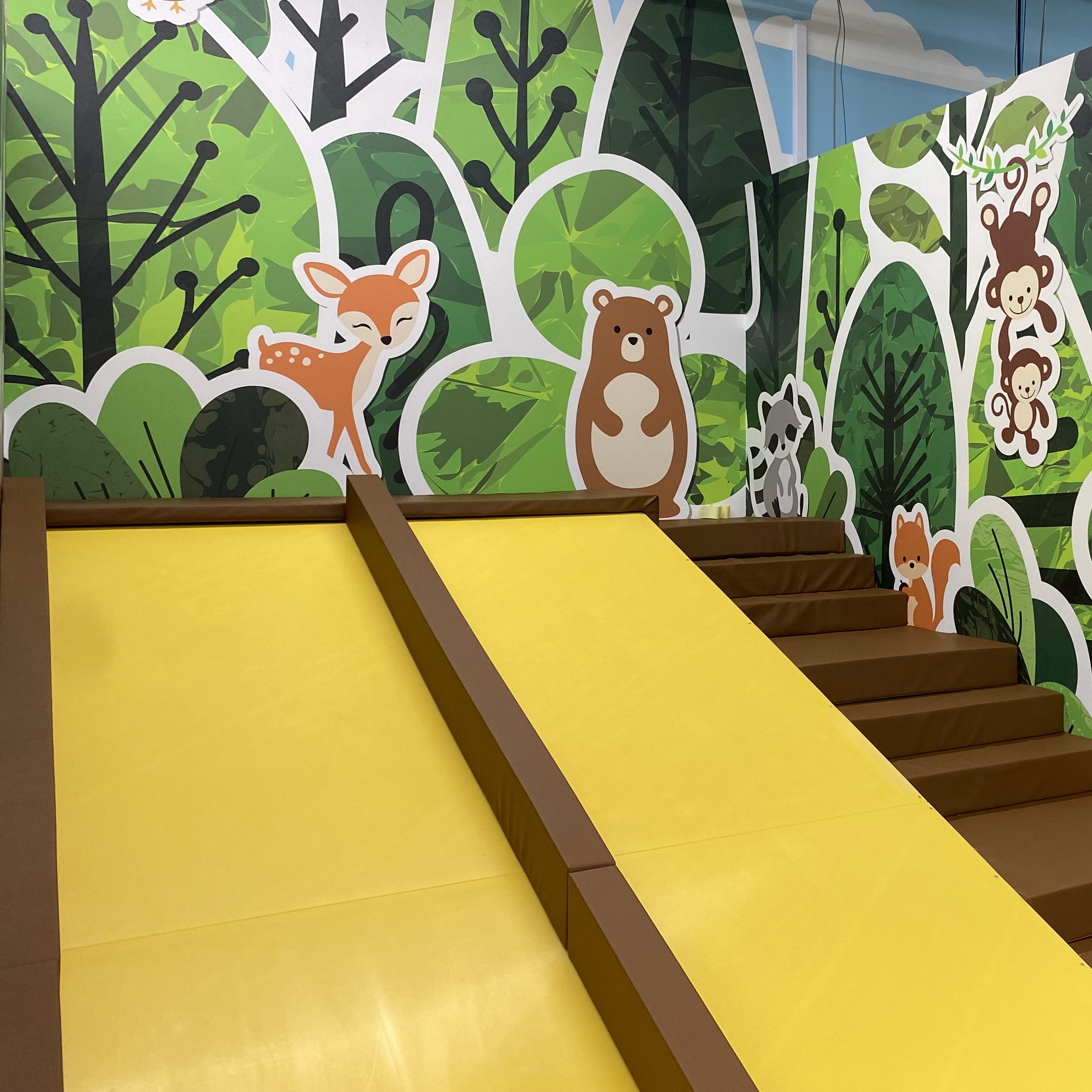 つるつると勢いよくすべるスライダー!すべるとみんなを見守っている動物たちの鳴き声が聞こえるてくるよ。