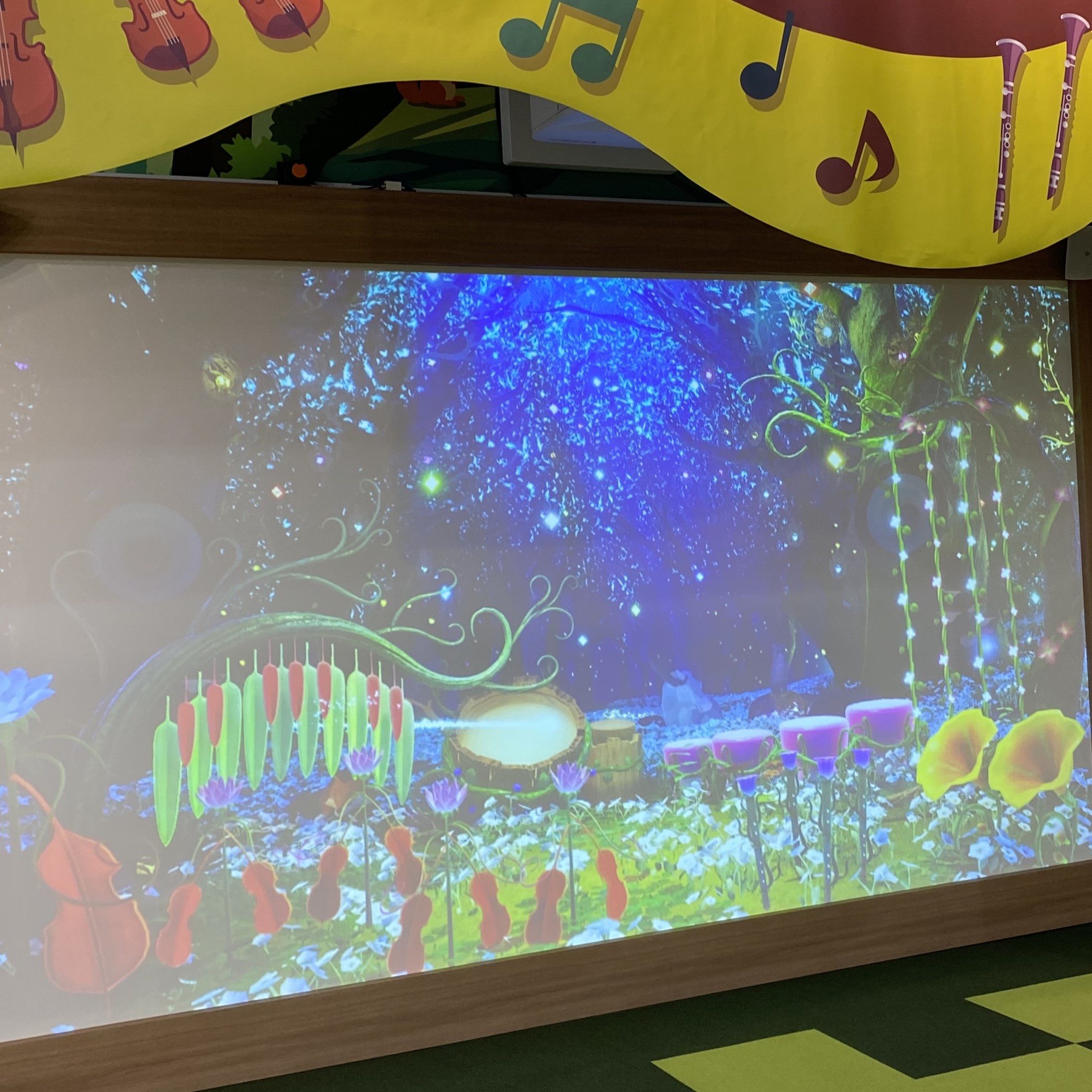 壁に映った森をさわるといろんな音がなるよ!自分だけの音楽会を開こう!