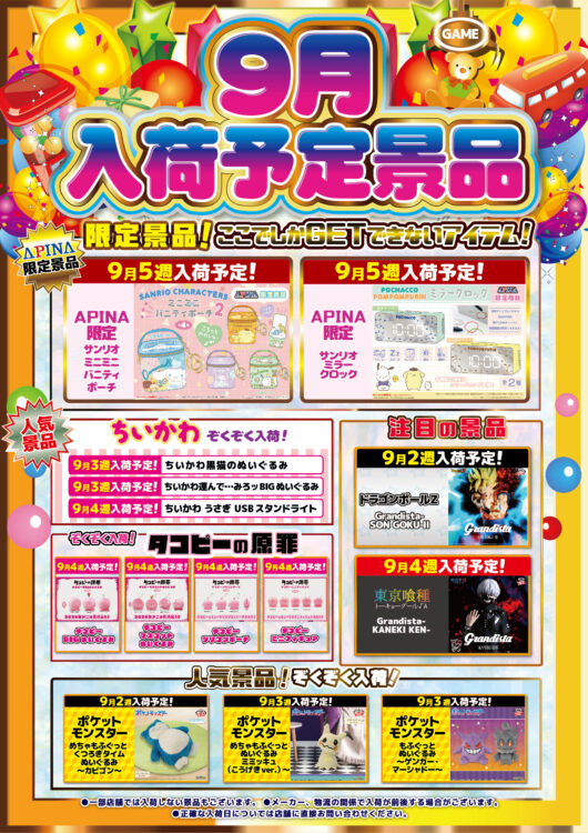 ★2025年9月入荷予定景品情報★