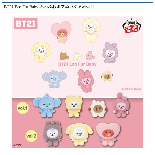 BT21 Eco Fur Baby ふわふわボアぬいぐるみvol.1